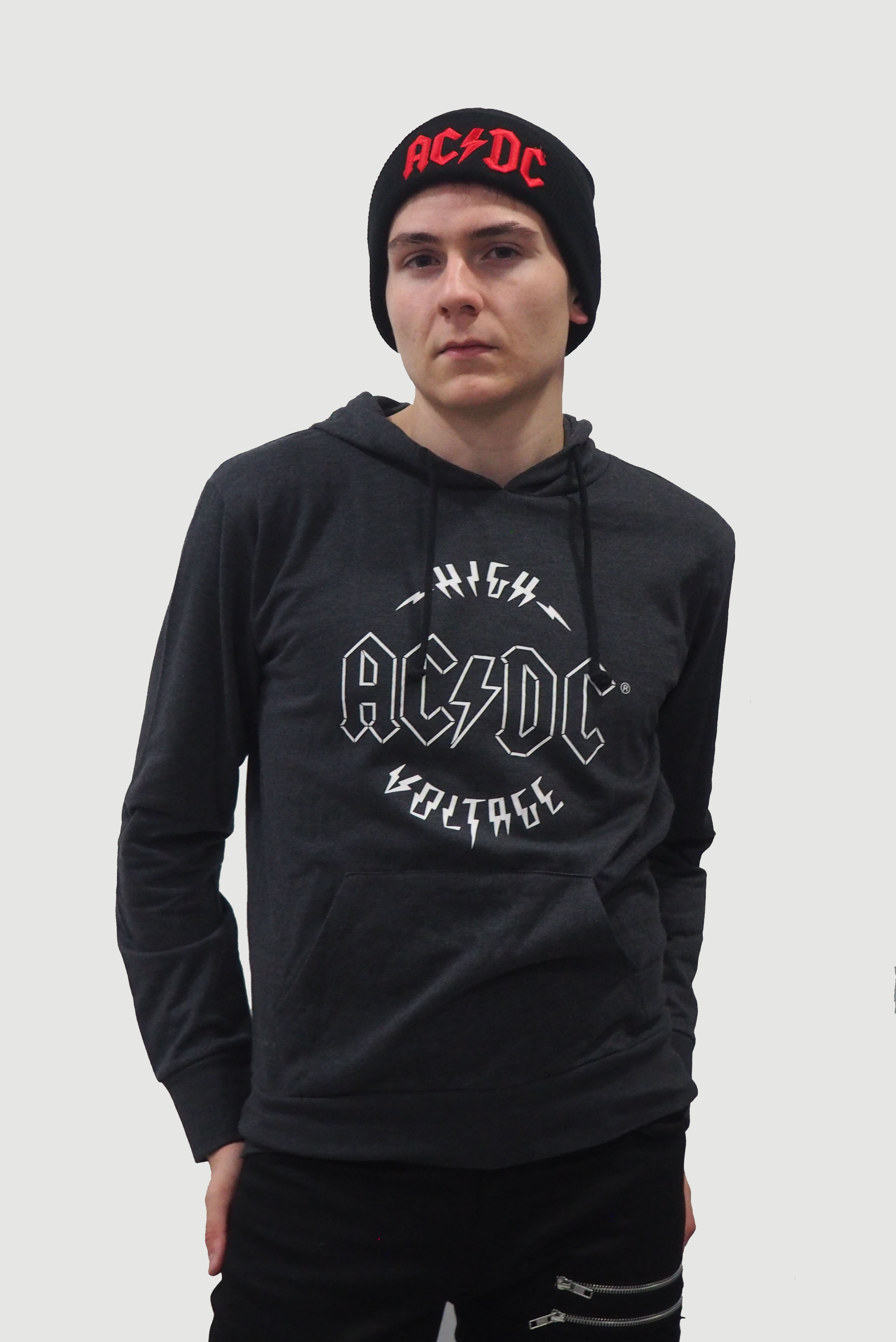 Sudadera AC/DC en gris piedra. 100% algodón brushed 240 gramos. Disponible en talla S, M y L. Unisex.